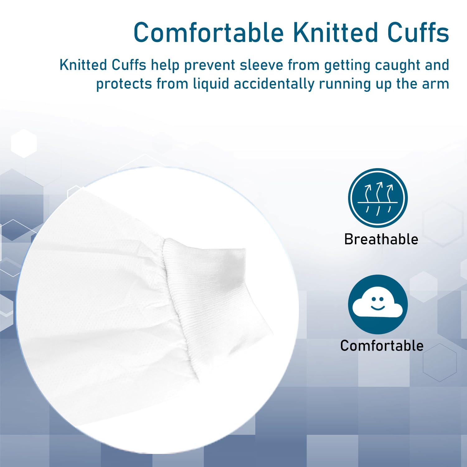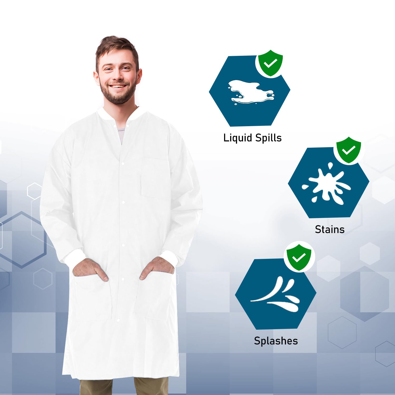 EOM Distributors High-Performance SMS Disposable Lab Coat with Knit Cuffs and Collar, Thigh Length - White (30 Pack)